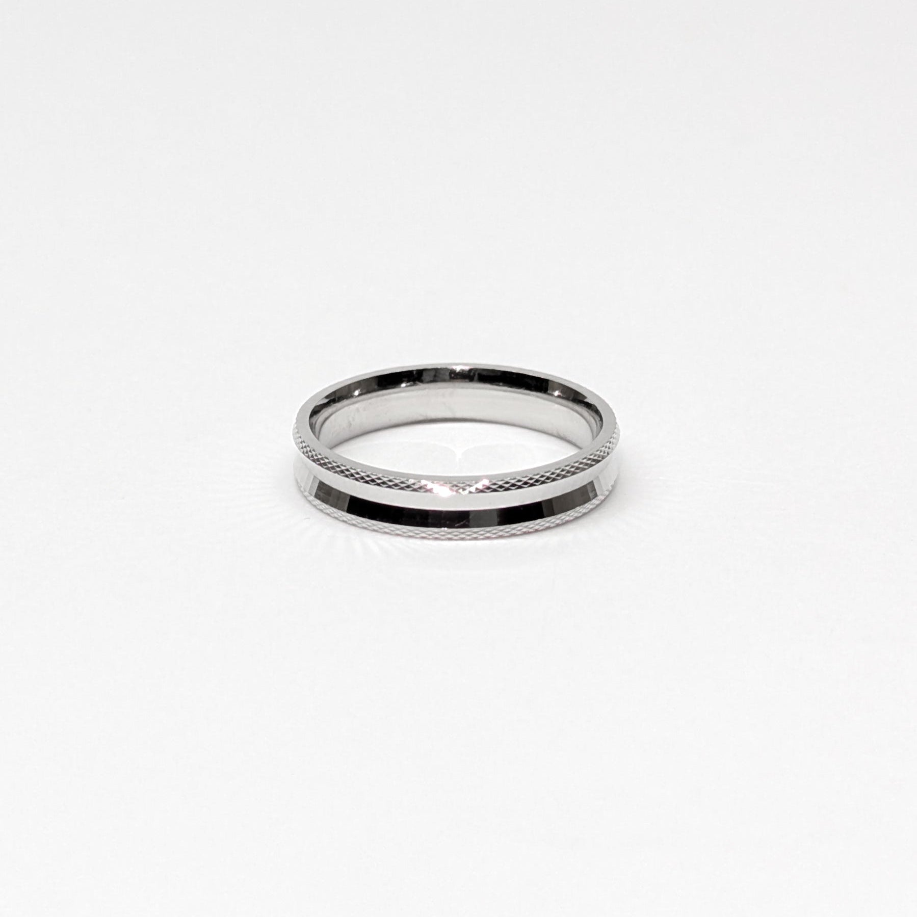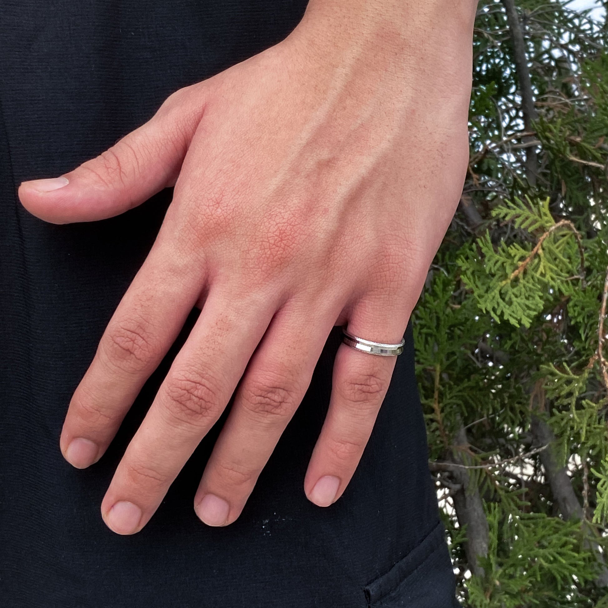 Sleek and refined, the obsidian trim ring features a bold, dual-layered design with smooth polished surfaces contrasted by a textured band. Crafted from 925 sterling silver, this ring embodies strength and elegance, offering a sharp, modern look for those who value understated sophistication.