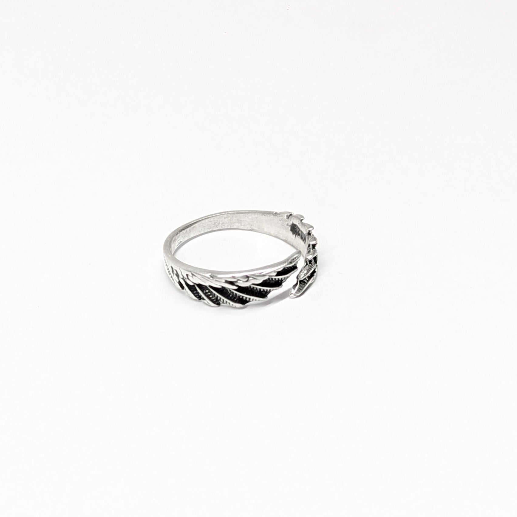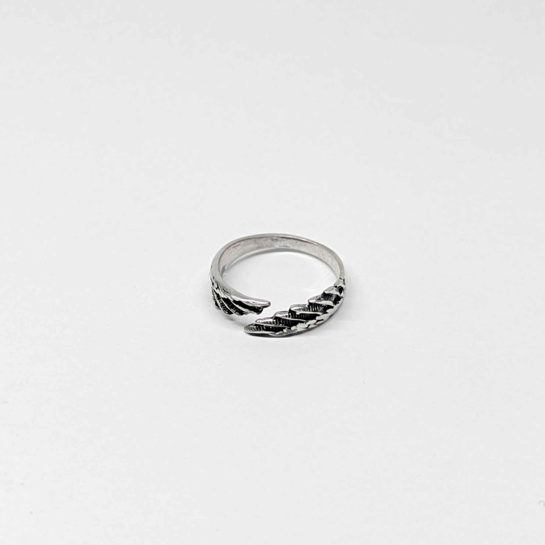 Made from 925 sterling silver, this adjustable open ring features a detailed feather design that gracefully wraps around the finger. The oxidized finish highlights the intricate textures, giving the piece a rugged yet sophisticated charm. This versatile ring is perfect for everyday wear or as a unique accent piece for special occasions. A timeless addition to any modern man's jewellery collection.
