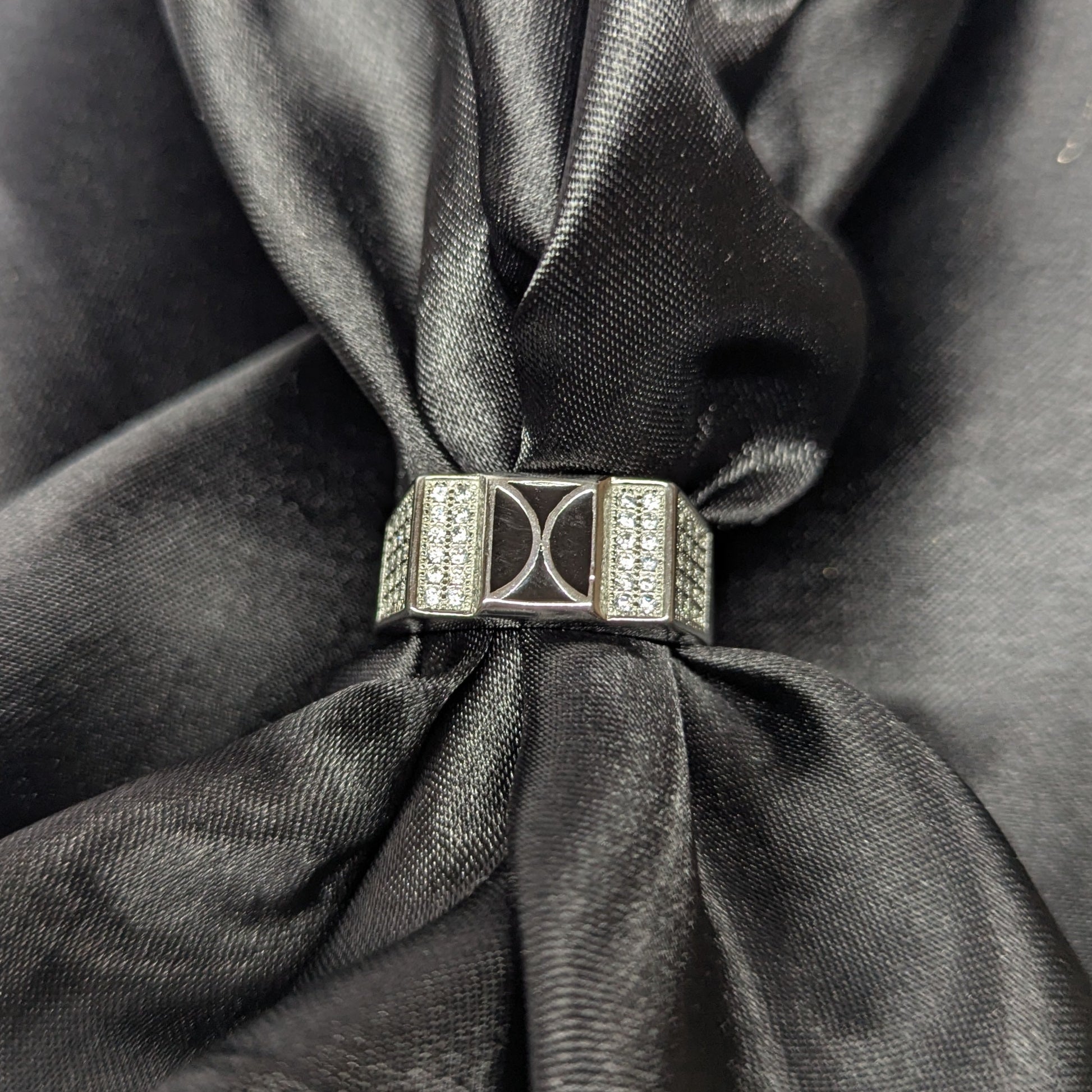 Crafted with precision from 92.5 sterling silver and encrusted with high-quality cz diamond stimulants, the Noir Edge collection redefines sophistication for the modern man. Each ring features a bold black centerpiece that stands as a symbol of strength and individuality. With clean edges and intricate detailing, these rings are built to complement power, purpose, and timeless taste. Designed for the modern man who values precision, silence, and strength.